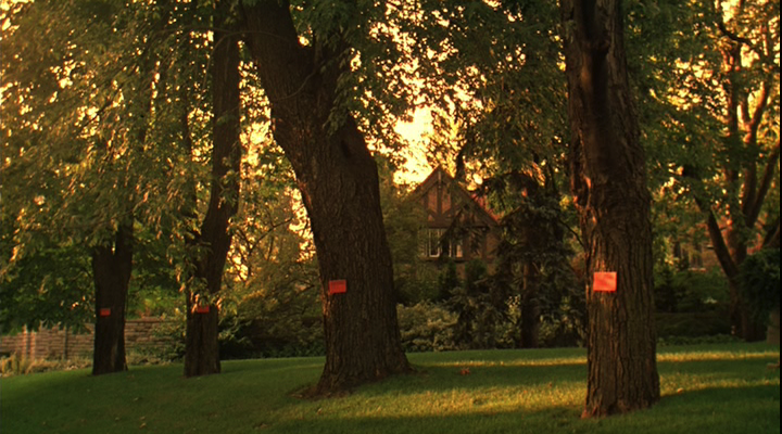 C. J. D’Arcy points to the outbreaks of Dutch elm disease which drastically affected American suburbs between the 1930s and the 1970s as illustrative of the dangers inherent in monocultures and, ergo, the “value of diversity in plant populations.” The two key factors of a monoculture are proximity and homogeneity, the former allowing pathogens to spread more easily and the latter making entire colonies susceptible to infection; the results of an infection in a monoculture are likely to be swift and devastating. Proximity and homogeneity can similarly be understood as two of the primary factors leading to the suicides of the Lisbon sisters. Exhibit #1, the snapshot of the Lisbons’ house which becomes one of the film’s primary visual motifs, is revealed in the novel to have been taken by a real estate agent “whom Mr. Lisbon had hired to sell the house his large family had long outgrown” prior to the events of the novel and the film (Eugenides 5). This stifling proximity is further suggested when Lux is overheard telling her mother, “I can’t breath in here,” a figurative turn of phrase which recalls a stanza of Cecilia’s poetry recited during the diary sequence: “The trees, like lungs / filling with air.”