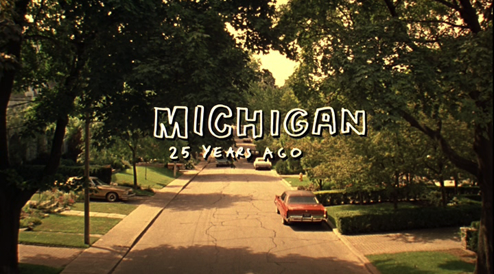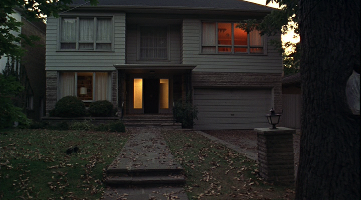 Perhaps the most striking shot of the Lisbon house is the time lapse which occurs an hour and fourteen minutes into the film. Succeeding a series of shots which depict the removal of several neighborhood trees, the Lisbon house stands in stubborn defiance of the decay within and surrounding it, its own diseased elm temporarily saved by the four remaining sisters’ protests. Occupying only twenty five seconds of discourse time, the story time is of indeterminate length, seemingly depicting an entire season’s change over the course of a single evening. As shadows stretch across the lawn and the sky darkens, leaves start to accumulate across the Lisbons’ property. By dawn, the entire lawn is covered, and an entire autumn is compressed into a single twenty-four hour span. In its poetic depiction of an impossible chronology, this one extraordinary shot exemplifies The Virgin Suicides’s multivalent temporal signifiers, expanding and complicating them beyond the past-present duality inherent in any film featuring retroactive voiceover narration. The visible elisions, made apparent by the conspicuously choppy time lapse, remind the viewer of the disconnectedness of the images and, by extension, the discourse; like the impressionism alluded to Cecilia’s diary, the film is comprised of autonomous moments which create the illusion of a continuity despite their gaps.